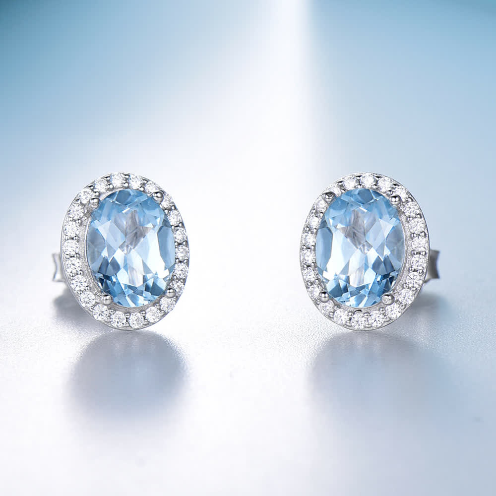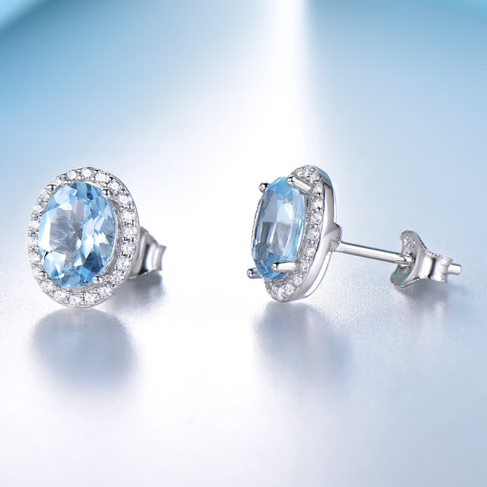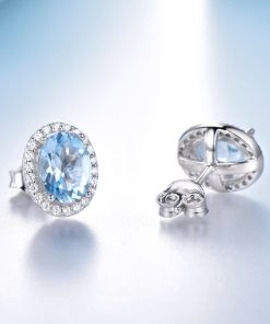 GemKing EUJ073B-1 S925 Sterling Silver Earring Nano sky blue OV6*8-2pcs Women’s Earring Weight:2.36g