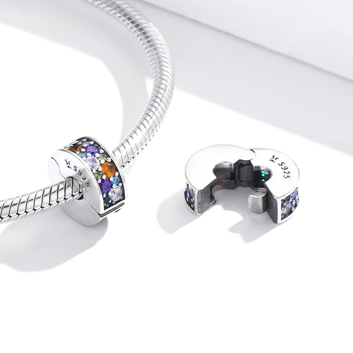 GemKing SCC1609 Colorful garden-round clip S925 Sterling Silver Charm