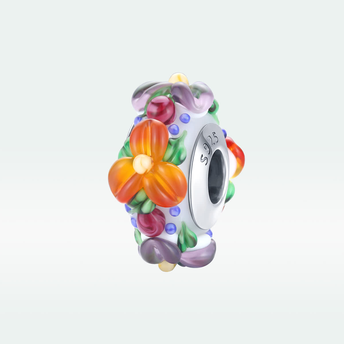 GemKing SCC1720 Colorful flowers S925 Sterling Silver Charm