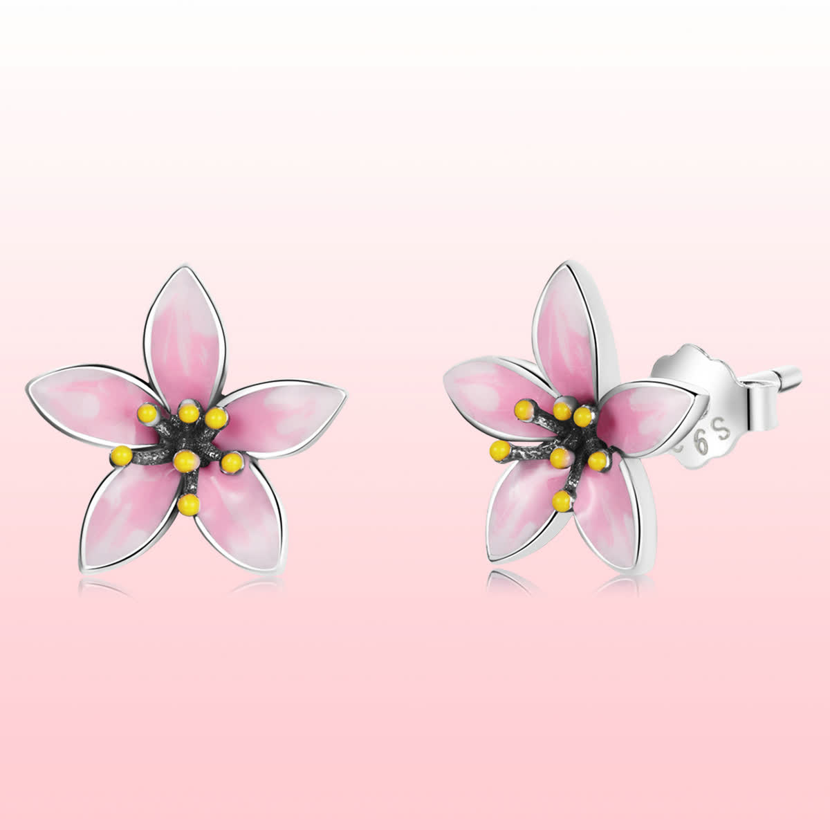 GemKing SCE1273 Pink cherry blossom S925 Sterling Silver Earring