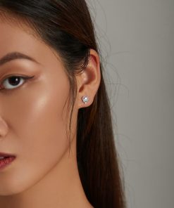 GemKing DY1D0006-S-W-WH S925 Sterling Silver Platinum Earring, Cubic Zirconia:5A size:7.2*7.2mm, main stone:5mm, weight:1.8g, Women Earring
