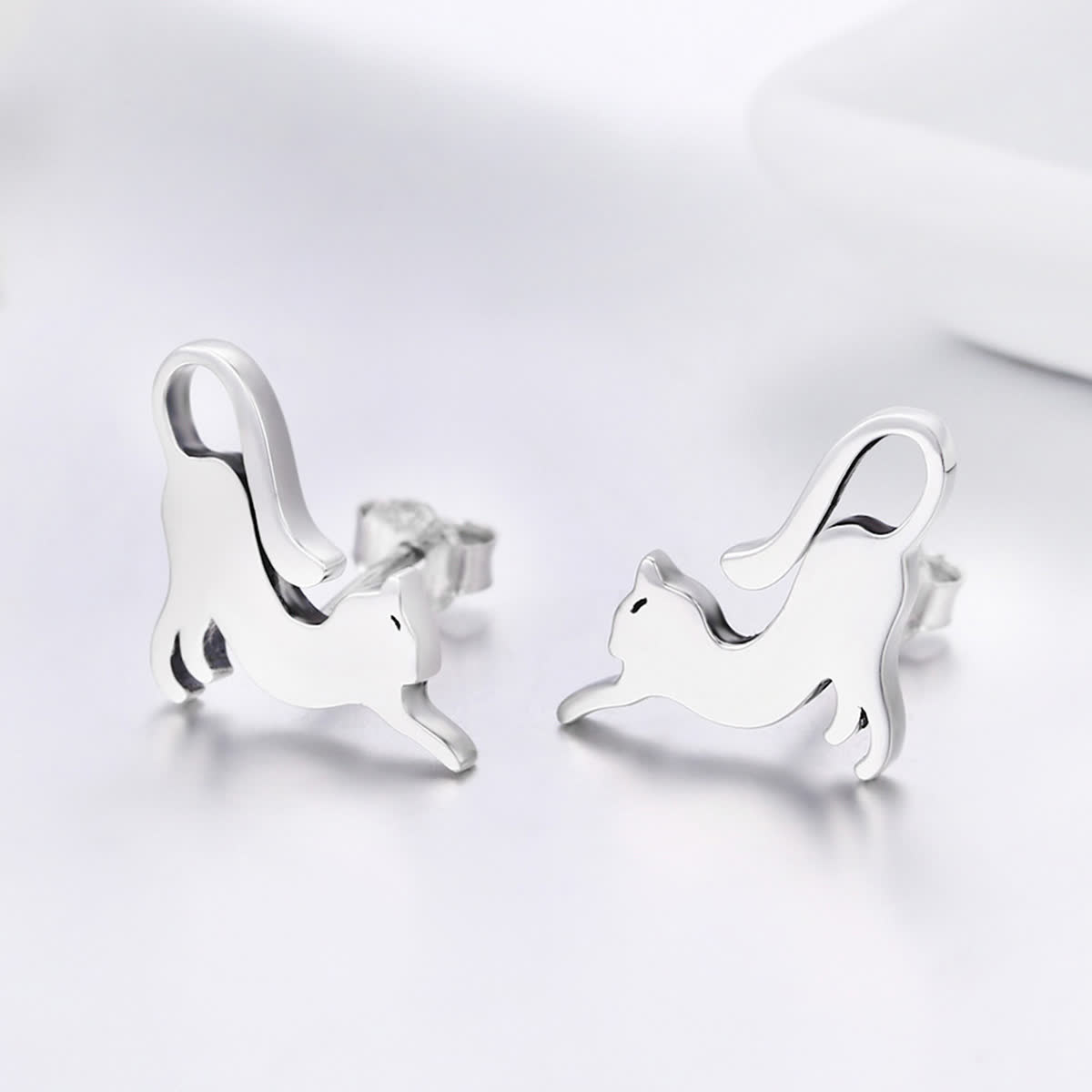 GemKing SCE366 Playful Kitty Playing cat S925 Sterling Silver Earring
