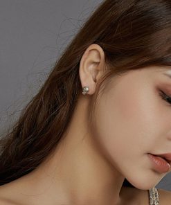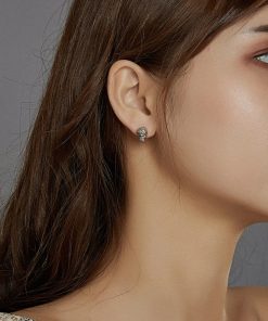 GemKing DY1D0006-S-W-WH S925 Sterling Silver Platinum Earring, Cubic Zirconia:5A size:7.2*7.2mm, main stone:5mm, weight:1.8g, Women Earring