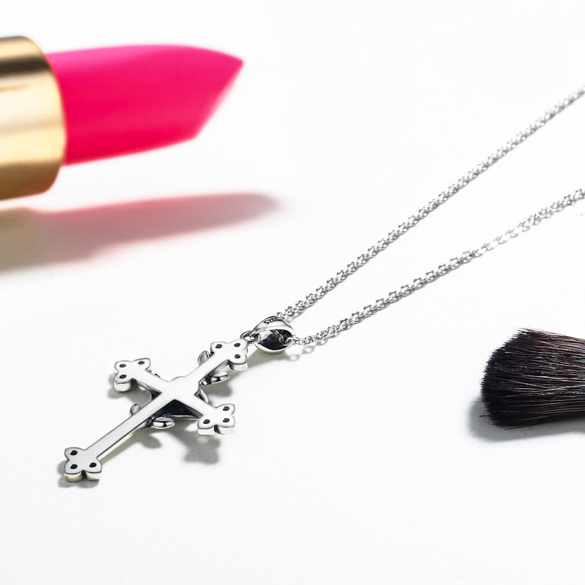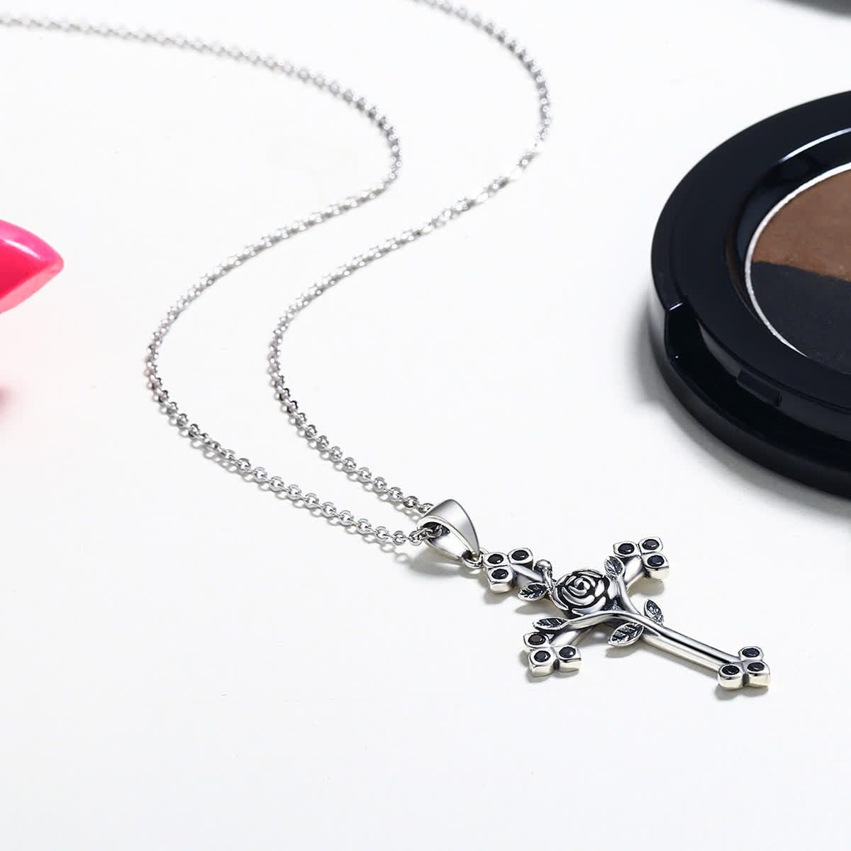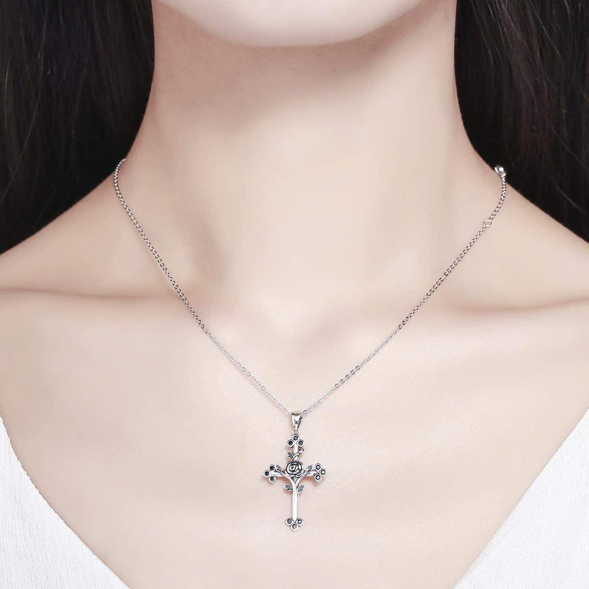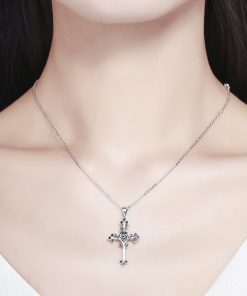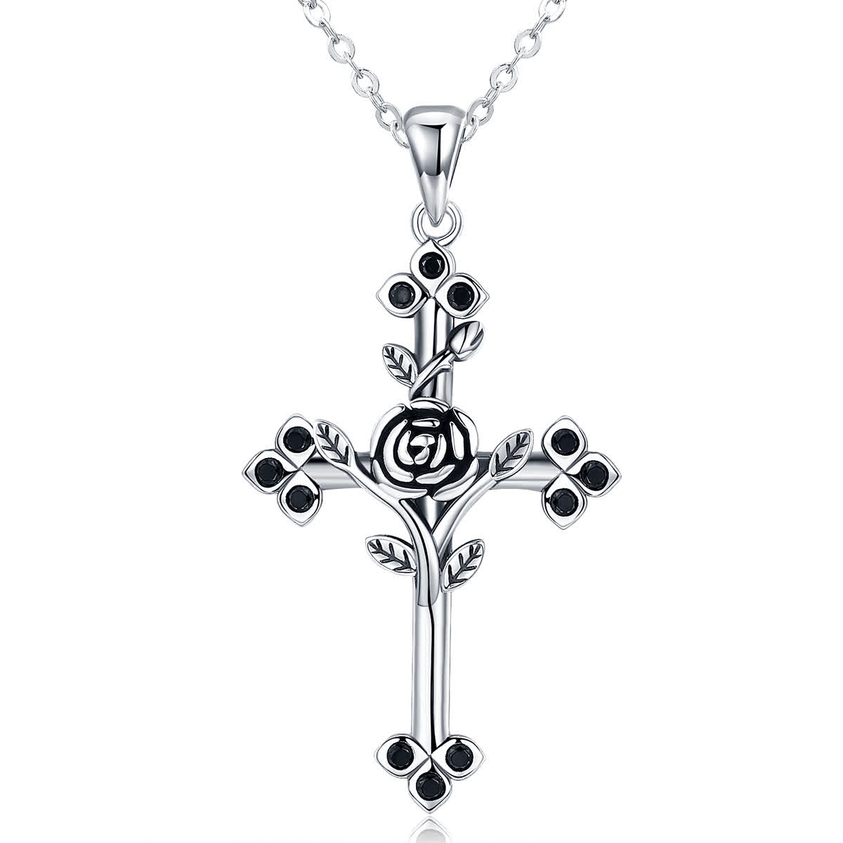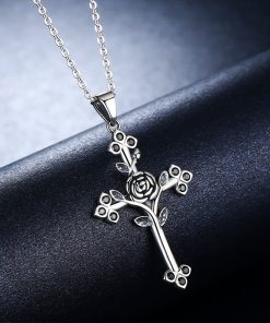GemKing SCN091 Rose Cross S925 Sterling Silver Necklace