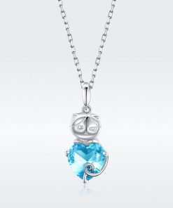 GemKing SCN331 Blue Kitty Cat S925 Sterling Silver Necklace