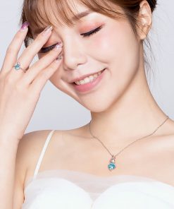GemKing NUJ039B-1 S925 Sterling Silver Pendant Necklace Nano sky blue topaz OV5*7-1pcs Box Chain Women’s Necklace Weight:2.80g