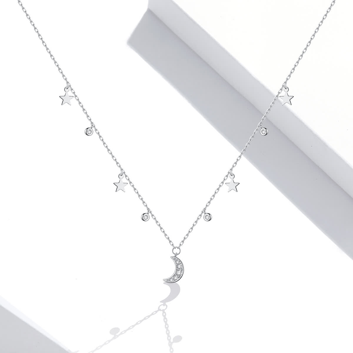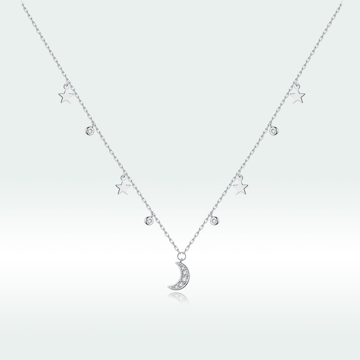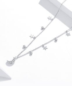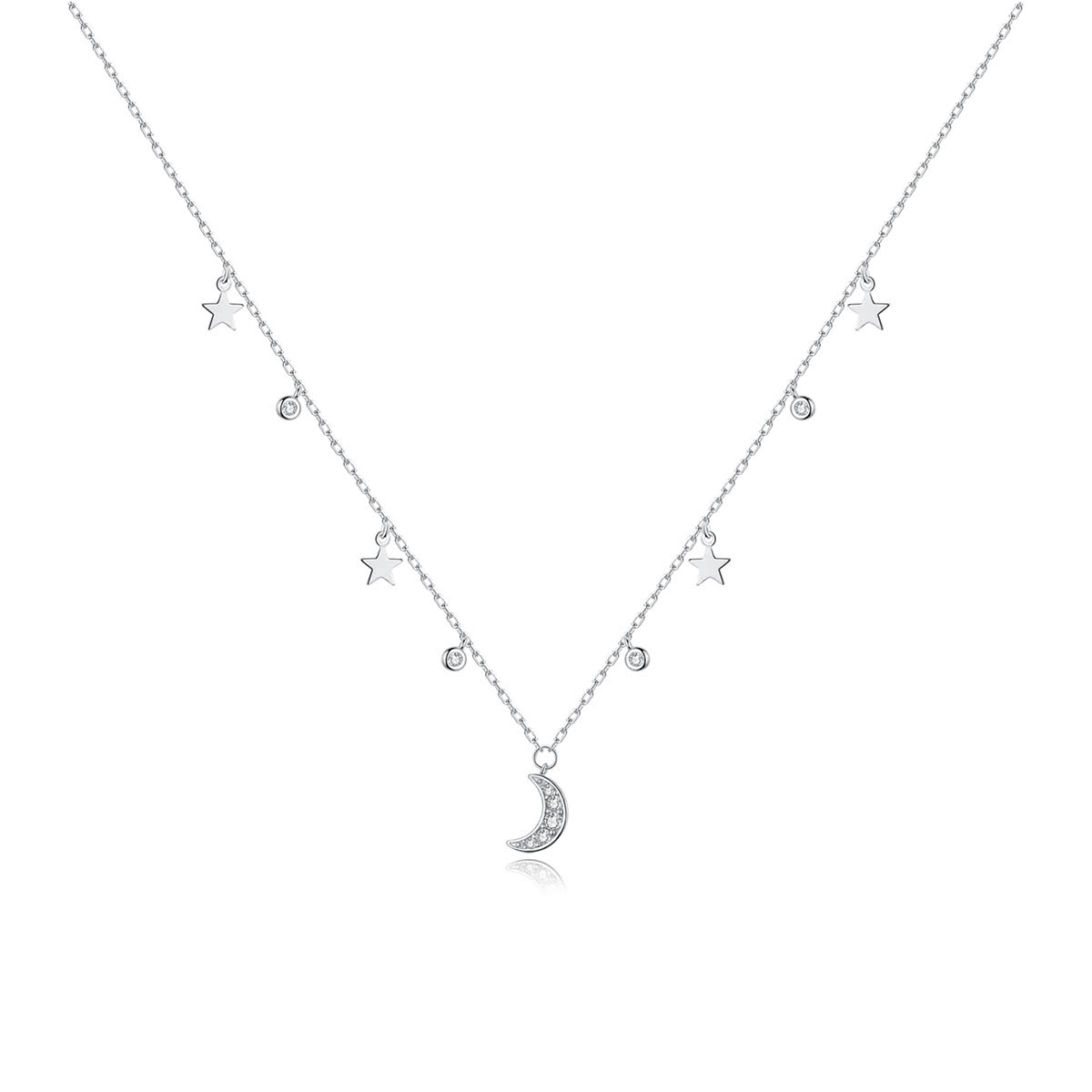 GemKing SCN420 Fantasy Moon and Stars S925 Sterling Silver Necklace