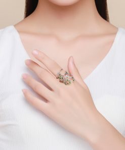 GemKing DY120099-S-G-WH-5 S925 Sterling Silver Gold Ring, Cubic Zirconia:8A stone:8*10mm, weight:3.7g, Women Ring