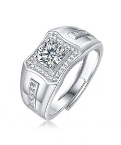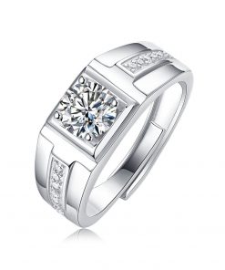 GemKing R11555-10 1 CT 1 carat Moissanite Men’s Ring S925 Sterling Silver Ring | gentleman