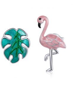 GemKing SCE1124 Flamingo and Leaf S925 Sterling Silver Earring